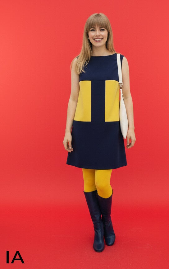 Vestido de estilo retro de dos colores. Espalda a un color, con cremallera.