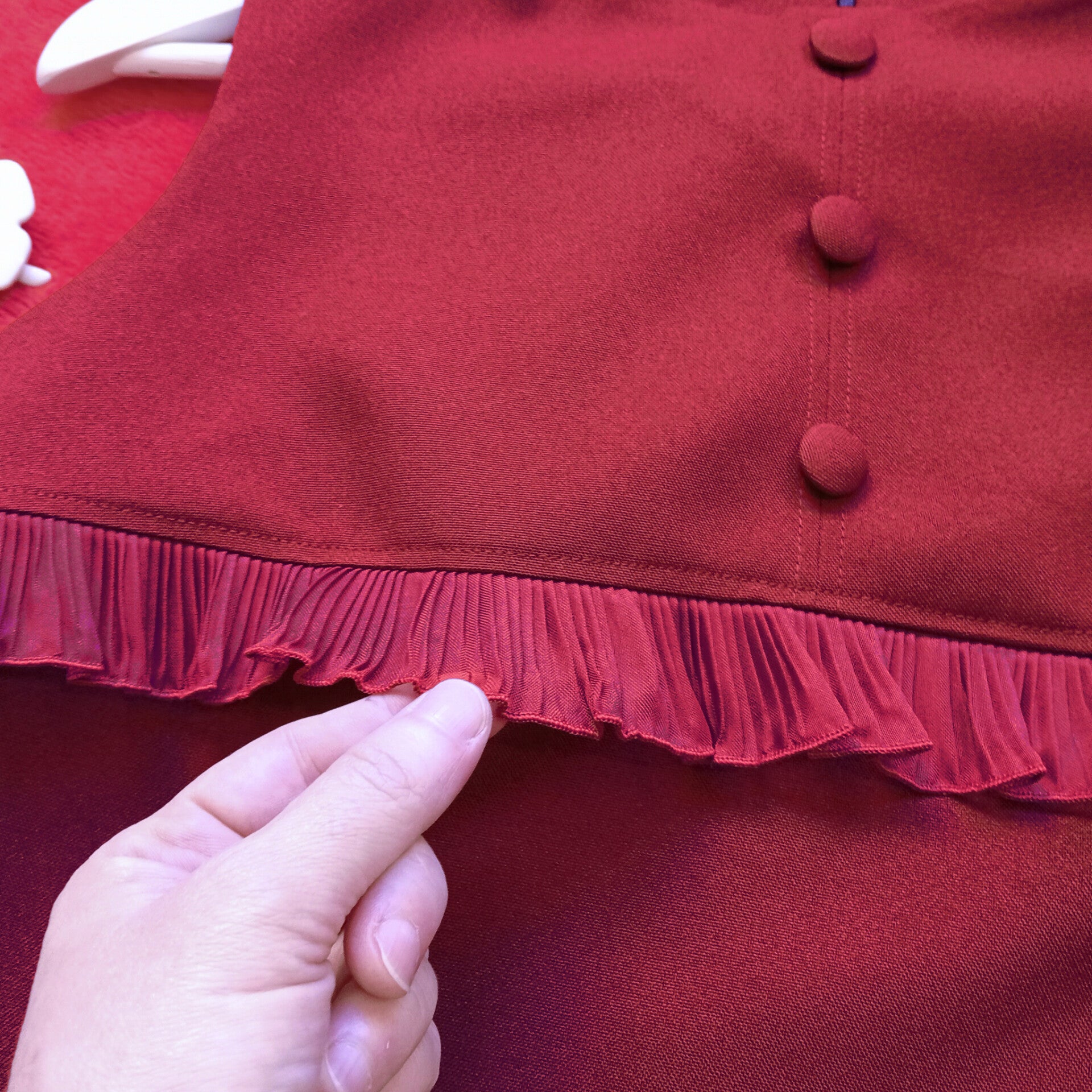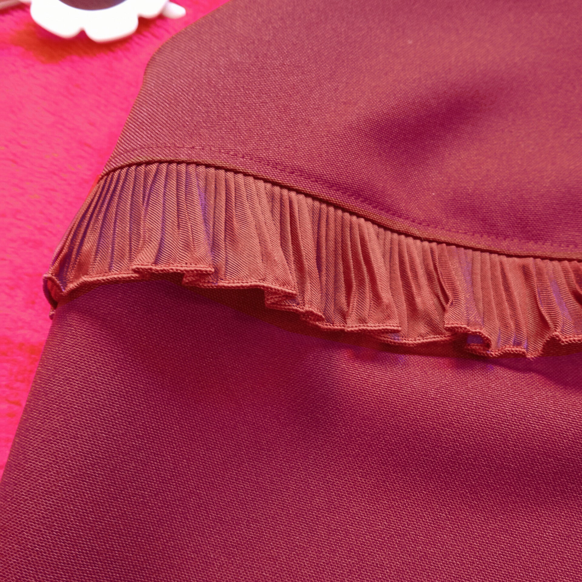 Handmade in non-stretch polyester in one color with decoration and buttons on the chest.