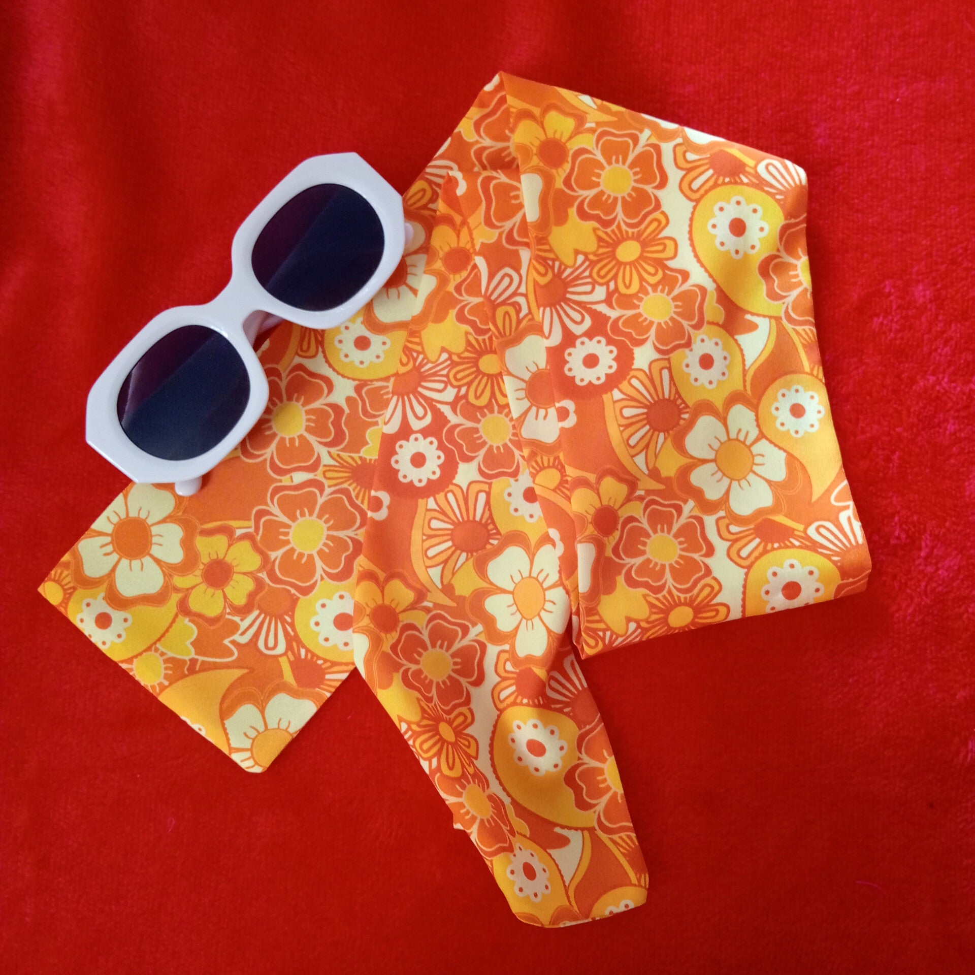Custom-designed floral print in orange and yellow tones. Limited edition.