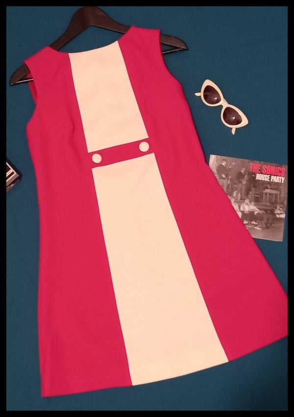 Vestido de estilo sixties de dos colores. Espalda a un color, con cremallera.