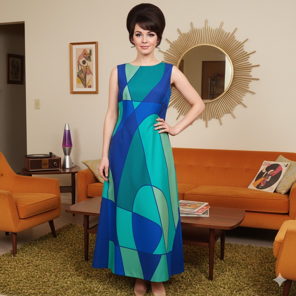 Long trapeze dress, inspired by 1960s maxi dresses.