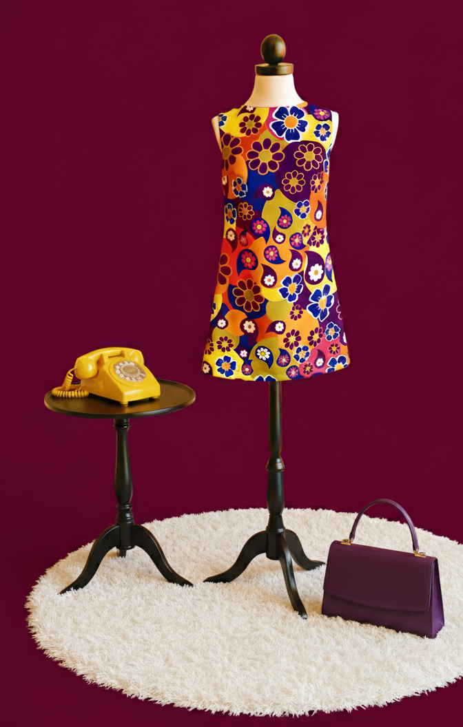 Vestido retro de corte trapecio NO entallado, hecho a mano en poliéster no elástico. Talla 36 (UK 8)
