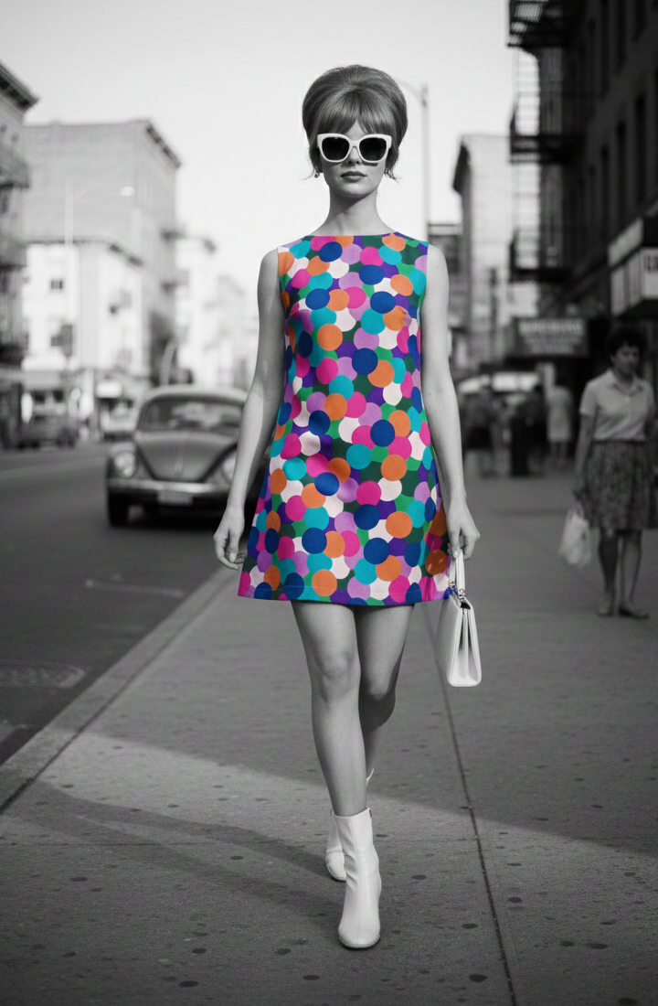 Hecho a mano en 100 % poliéster no elástico de tonos azules, rosas, verdes, violeta y naranja (muy versátil, no destiñe, lavable a máquina con agua fría, planchable a baja temperatura, se arruga poco). Corte en A, no entallado.
