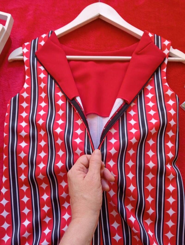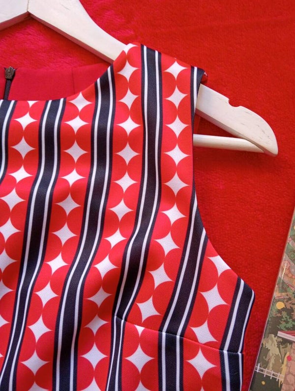 Nuevo, Hecho a mano en tela de polyester grueso, no elástico, de color rojo, negro y blanco. Se puede lavar en frío y planchar a baja temperatura. No encoge, no destiñe y se arruga poco.