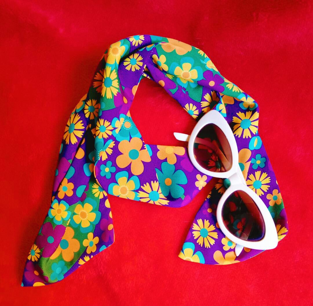 Pañuelo pequeño hecho a mano en tejido de polyester muy suave.Tamaño aprox : 11 cm x 92 cm.*Contáctame si tienes alguna duda o si necesitas más información.
