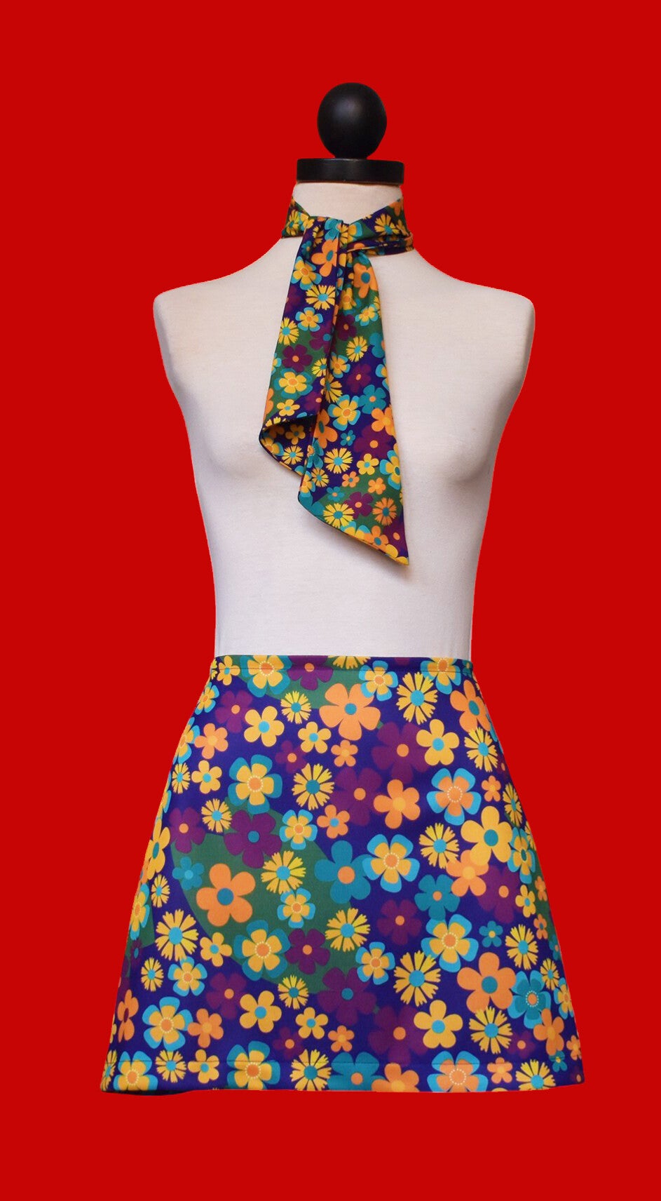 Falda corta hecha a mano en tejido de poliéster grueso y suave, con estampado de diseño propio y edición limitada.